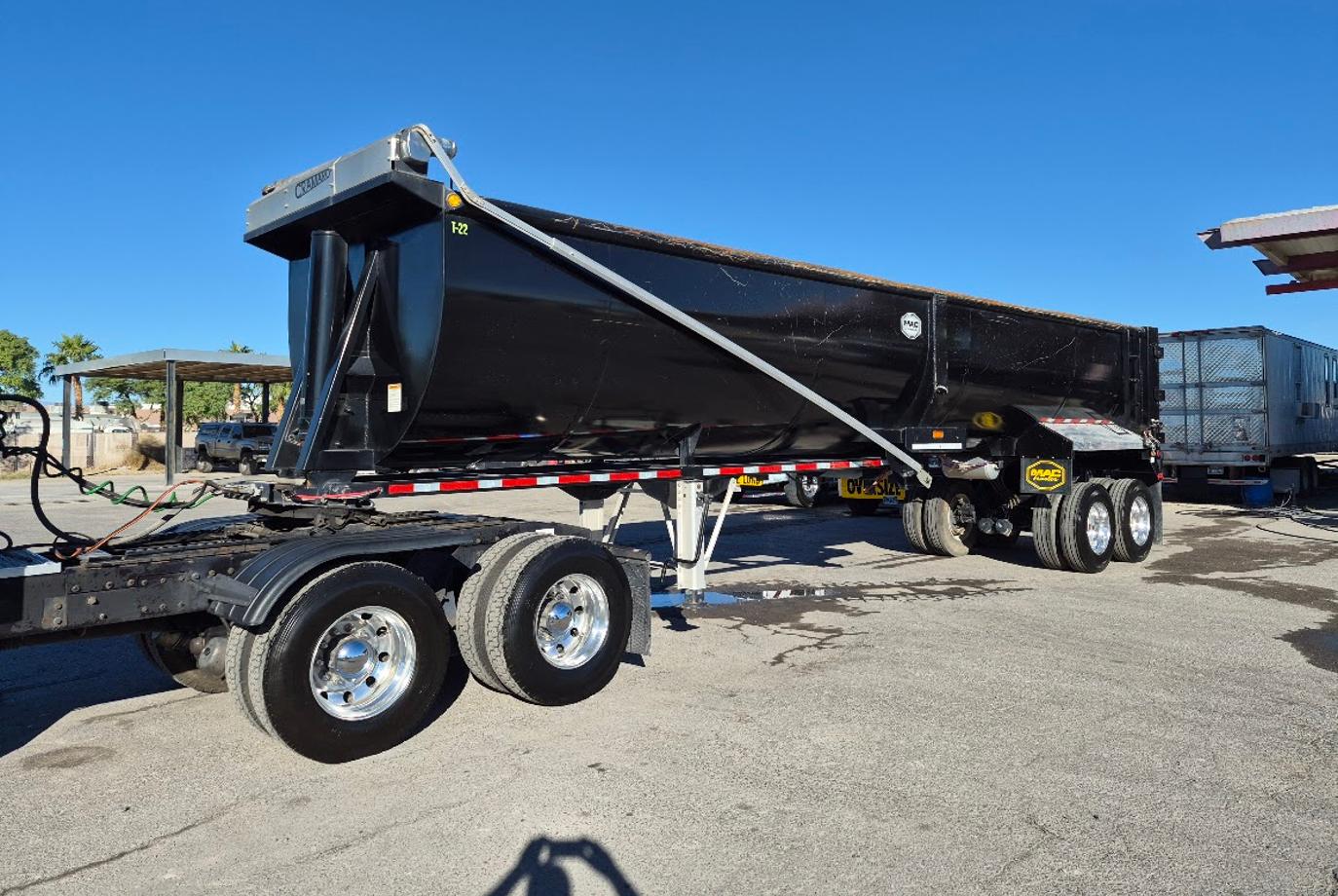 Mack WH WESTERN STEEL FRAMELESS HALF ROUND End Dump with 49 CUBIC YARDS capacity and HARDOX AR450 body material.